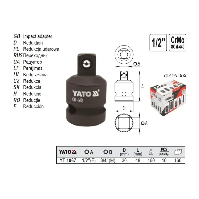 1/2" Lööküleminek 3/4" YT-1067