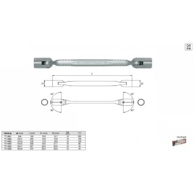 18x19 padrun-padrun võti CrV liikuv ots 12kant YT-4966