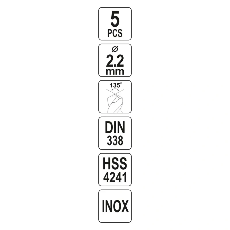 2,2mm metallipuurid HSS 5tk L=53mm YT-44205