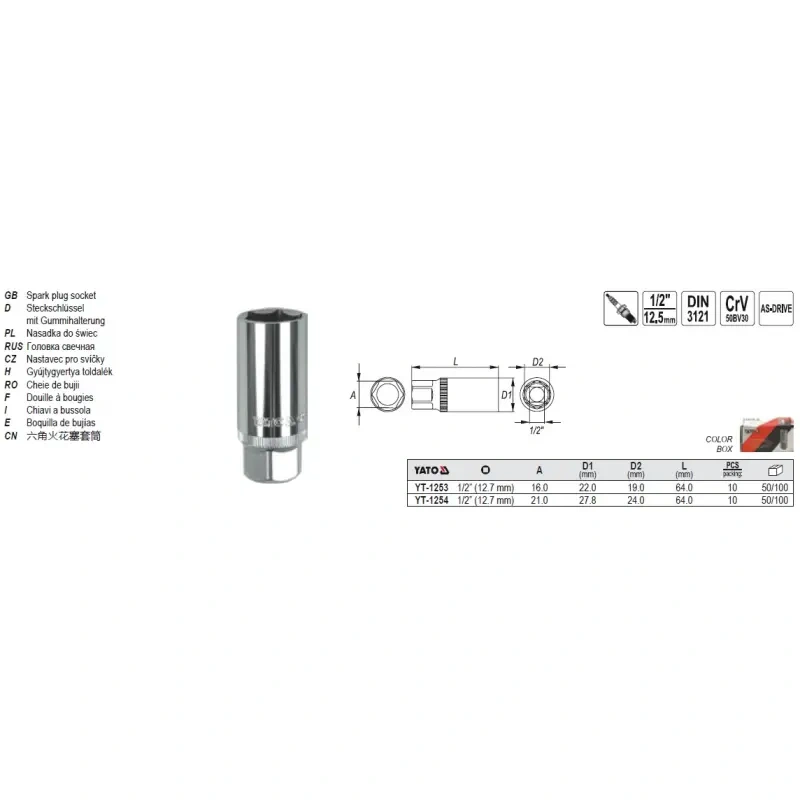 21mm küünlapadrun 1/2" L64mm YT-1254
