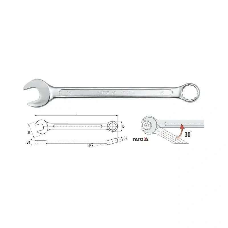 Kombineeritud mutrivõtmega, 15 ° korgiga, valmistatud süsinikterasest, kroomitud võtmepinnast, satiiniga viimistletud.