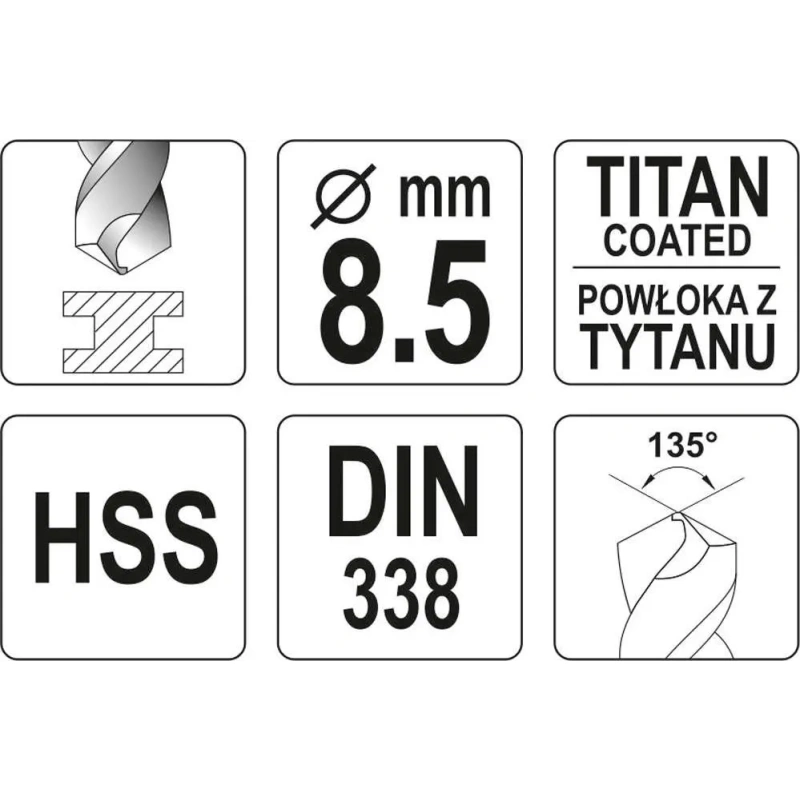 Agressiivse terageomeetriaga maandatud puur. Tänu titaannitriidkattele hajutab see soojuse väga tõhusalt ega muutu kõvaks teraseks töötamisel igavaks.Tera kaldenurk 135 ° võimaldab puurida ilma keskmist stantsi kasutamata. Valmistatud vastavalt standardile DIN 338 professionaalseks kasutamiseks tööstuses.