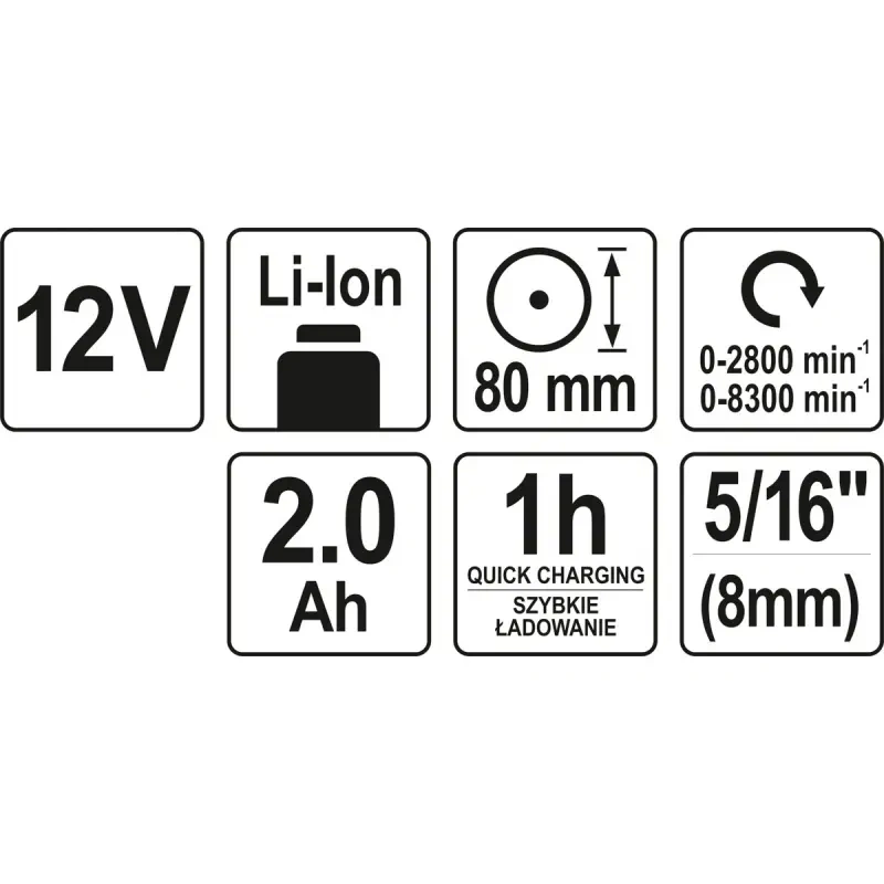 - komplektis: 2 Ah YT-82909 aku ja 1 h laadijat ning 3 täiendavat erineva kõvadusega abrasiivketta (vaha ja pasta jaoks)