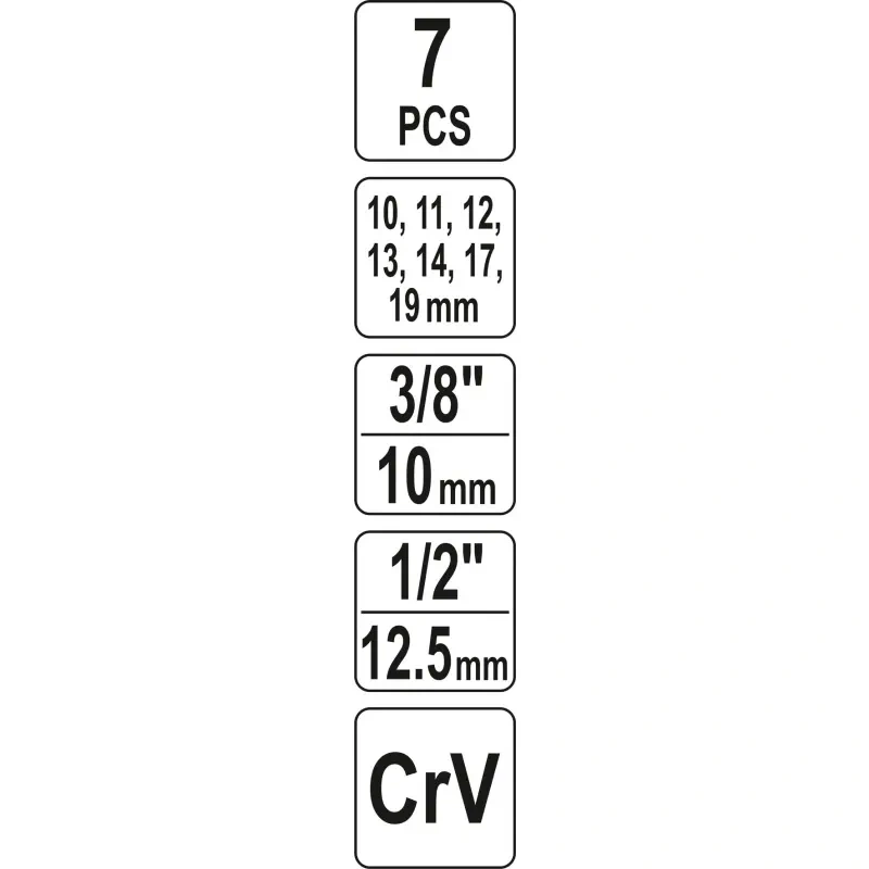 - vahemik: 10, 11, 12, 13, 14, 17, 19 mm