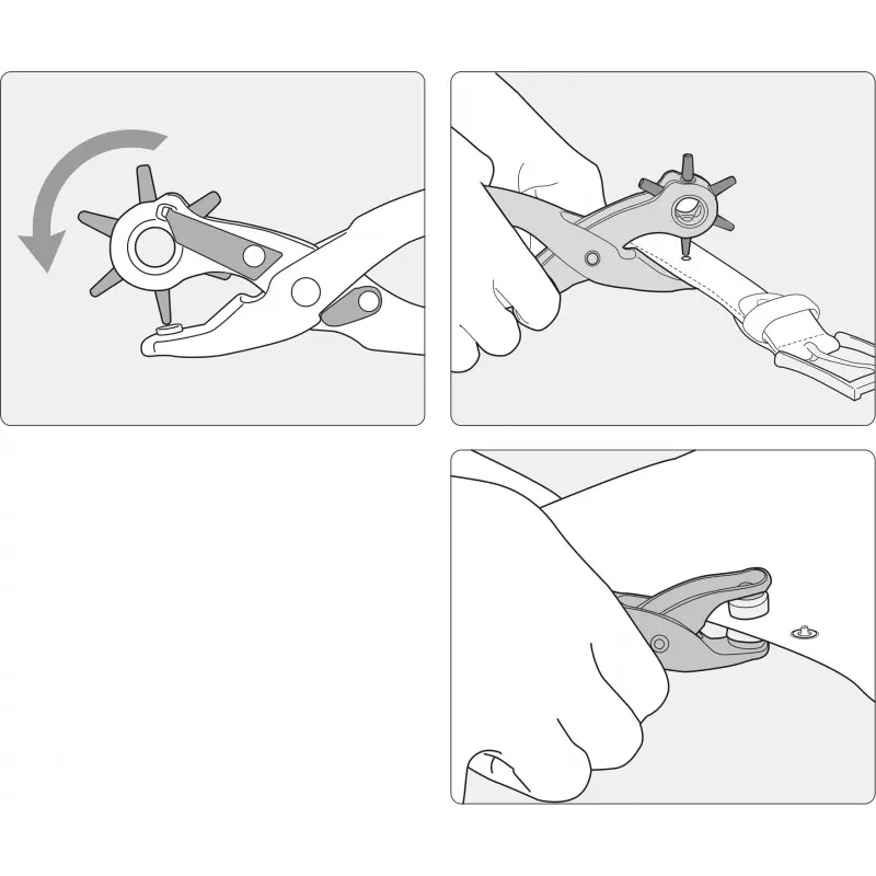Nahast, kummist, papist ja muudest sarnastest materjalidest aukude valmistamiseks. Võimeline lõikama auku läbimõõduga 2,5, 3, 3,5, 4, 4,5, 5mm.