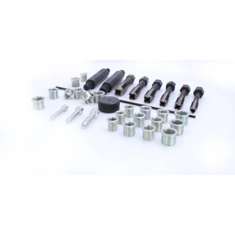 Komplektis on keermelõikurid ja tööriistad keermestatud hülsside õigeks sisestamiseks ploki kaande. Hülsside pikkus on 12 mm. Tarnitakse käepärases hoiukarbis.