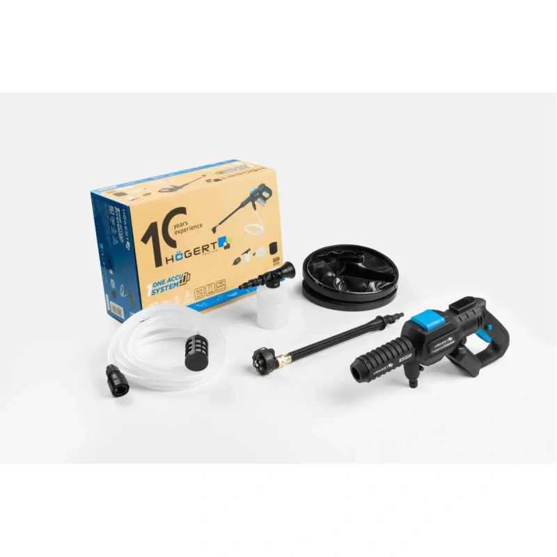 Högert Technik HT2E286 akupesur on loodud mobiilse seadmena kergeteks ja keskmise suurusega puhastustöödeks kodus, aias ja puhkealadel.