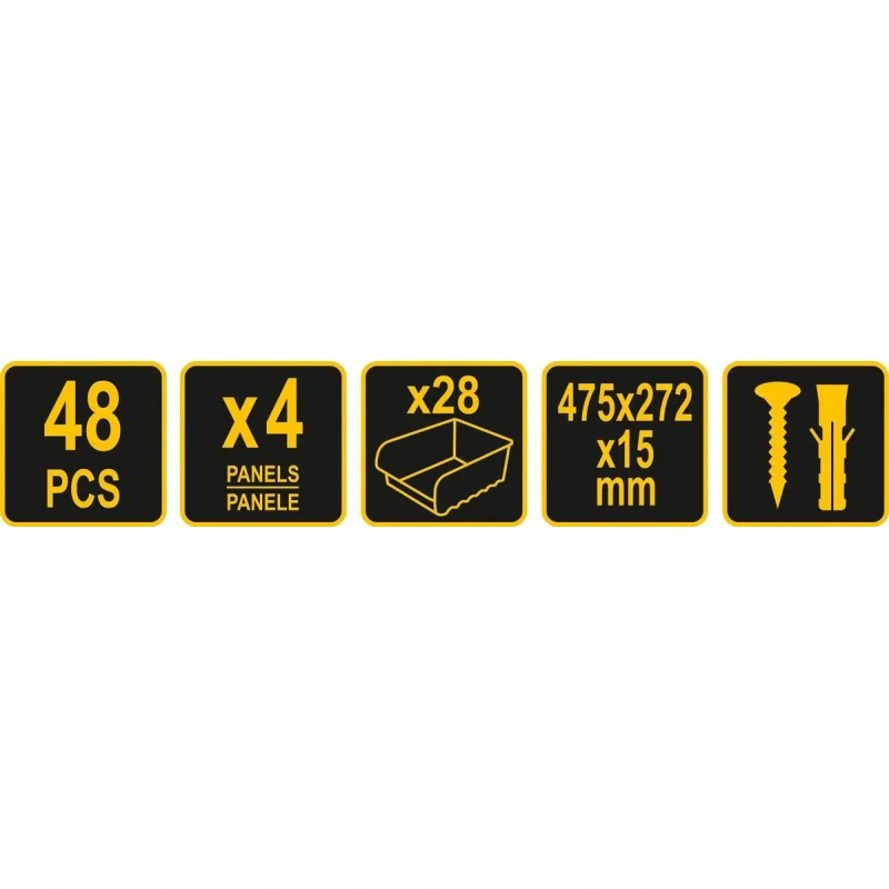 - Paneeli mõõtmed: 475 x 272 x 15 mm (antud mõõt kehtib ühele paneelile; komplekt sisaldab 4 tükki)