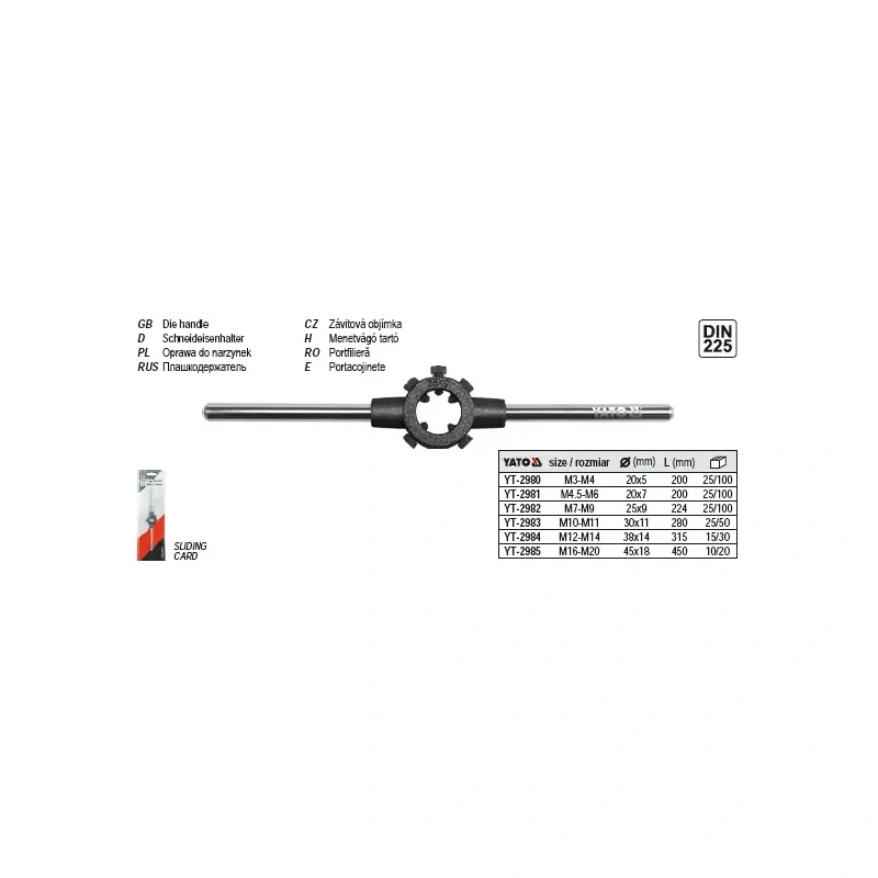 Keermelõikuri hoidja M7-M9/d25x9 L224 YT-2982
