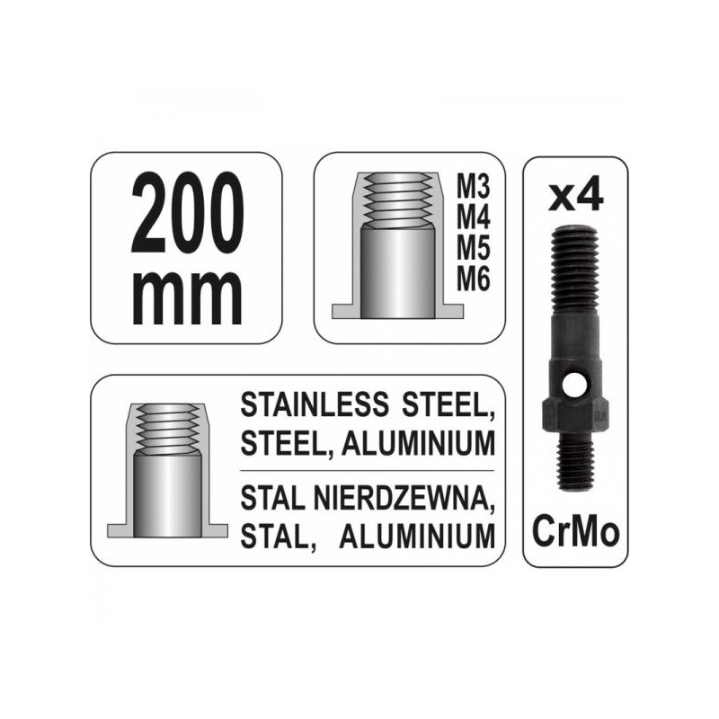 Keermeneedi tõmbamise tangid 200mm M3-M6 4adapterit YT-36140