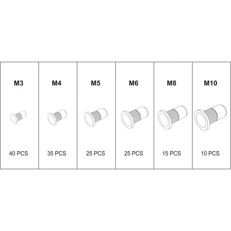 Keermeneetide komplekt (tõmbemutter) M3-M10 150 tk alumiinium YT-36460