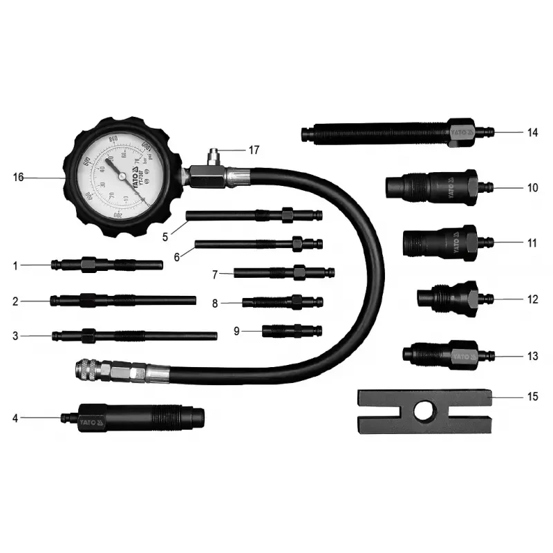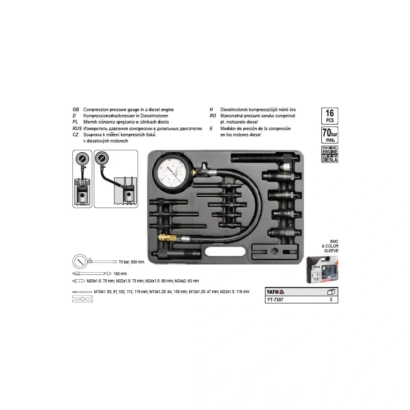 Kompressiooni mõõtja diiselm. 16osa 70bar YT-7307
