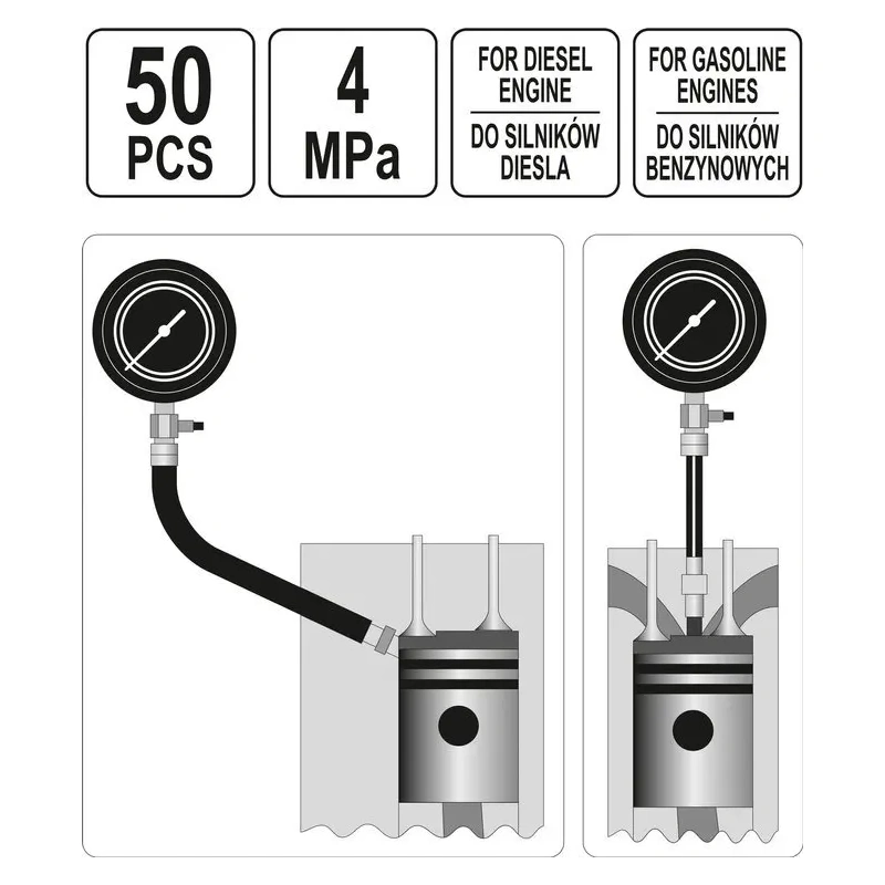 Kompressioonimõõtja ben/diisel 50osa YT-73012