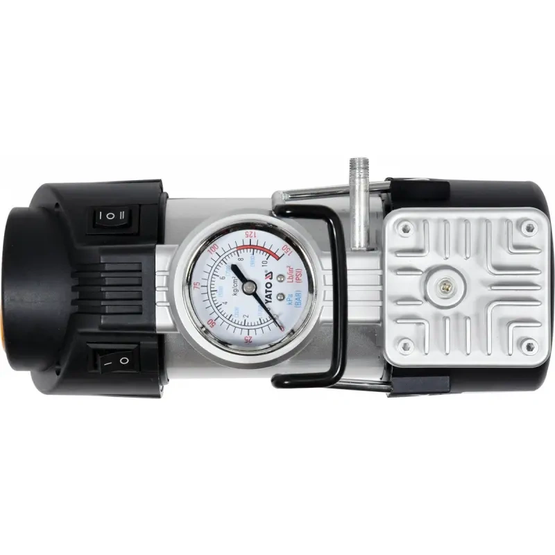 Võimas kompressor täpsusega manomeetri pingega 12V. Mõeldud klapiga varustatud rataste ja sisekummide pumpamiseks autodes, mootorratastes ja jalgratastes, samuti - vahetatavate näpunäidete abil - madratsite, täispuhutavate paatide, kuulide jaoks.
