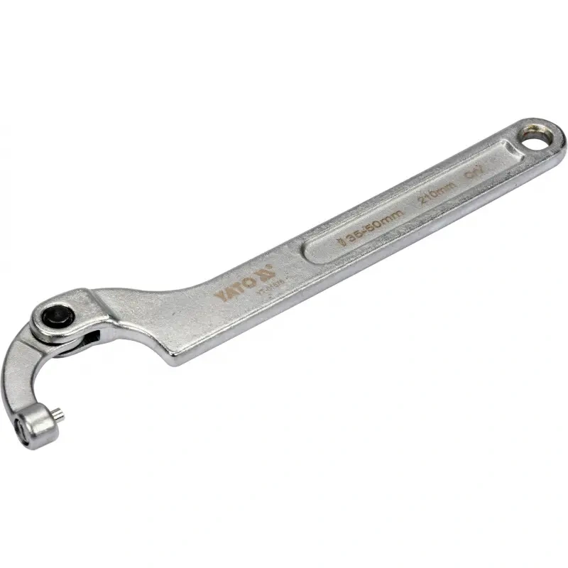 Konksvõtmega ümmargune tihvt, kaubamärk YATO YT-01676. Valmistatud vastupidavast CrV kroom-vanaadiumterasest. Matt kroomitud võtmepind. Mõeldud äärikute, rõngaste ja laagrite hooldamiseks.
