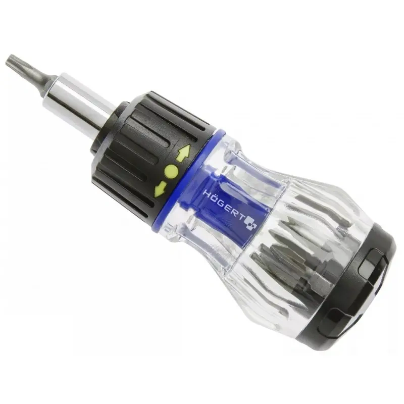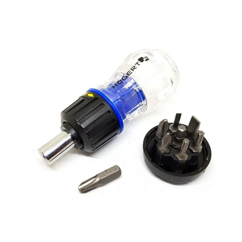 - Lühike pööratav käepide muudab kruvikeeraja ideaalseks töötamiseks piiratud ruumides ja raskesti ligipääsetavates kohtades