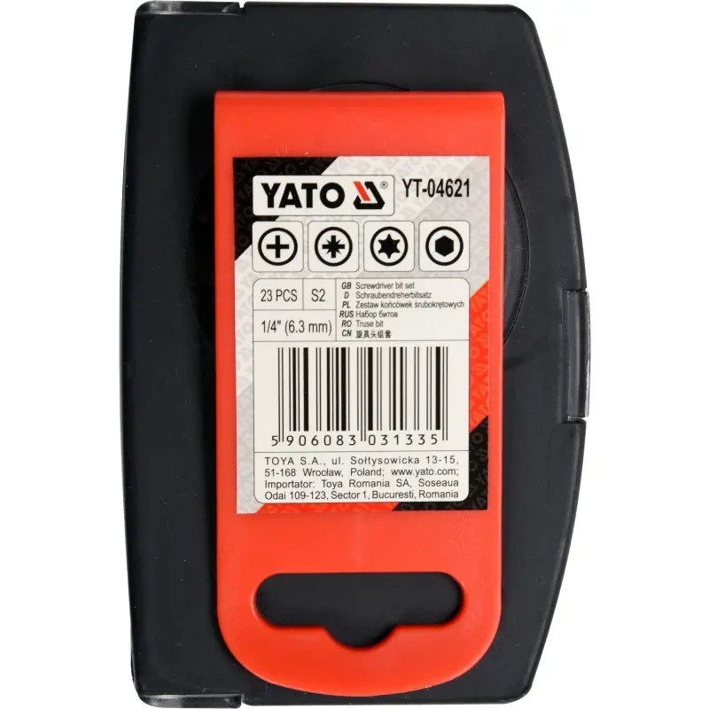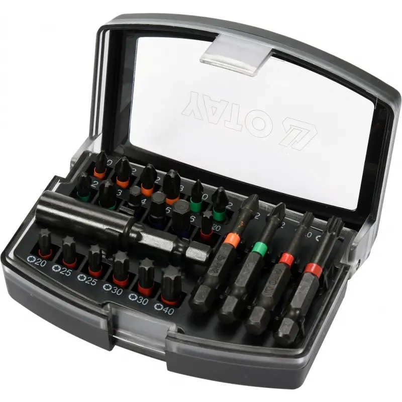 YATO YT-04621 on löökkindlate otsikute professionaalne komplekt. Kavandatud kruvide pingutamiseks ja vabastamiseks raskesti ligipääsetavates kohtades. Soovitatav autoteenuste ja motospordi harrastajatele. Need sisaldavad funktsionaalseid vahendeid, mis on valmistatud roostevabast terasest AISI S2 ja adapterist. Pakendatud kolbampullidesse koos loetavate elementidega