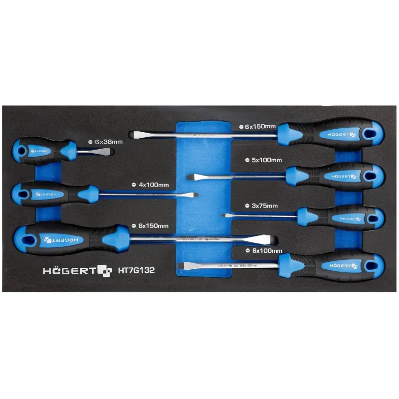 Kruvikeerajad tööriistakapi sisse. 7-osaline kruvikeerajate komplekt Hogert.