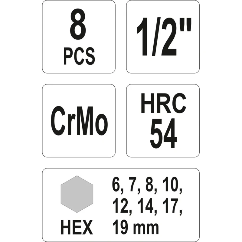 Kuuskant löökpadrunid 8tk 1/2" 6-19mm YT-1066