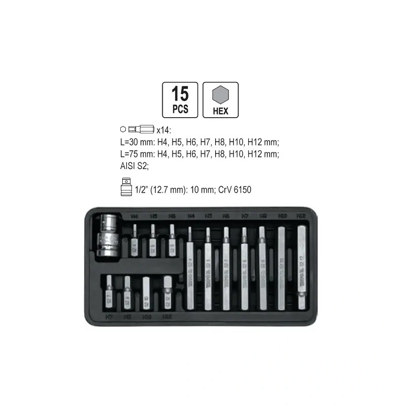Kuuskant otsikute komplekt 15osa H4-H12 YT-0413