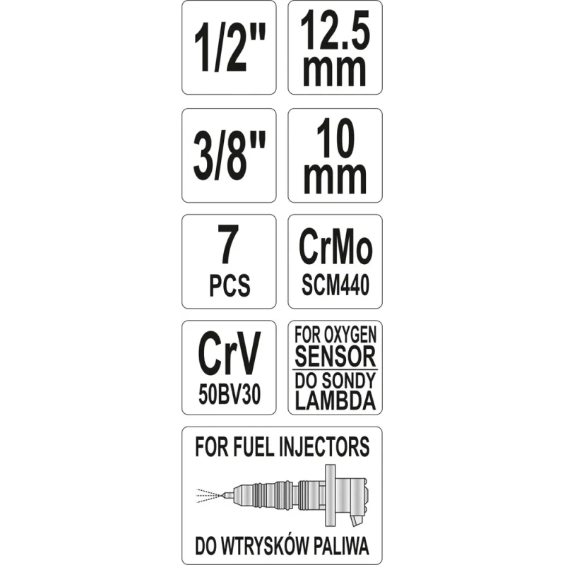 | Suurus [mm] | 12,7 x29, 9,5 x 22, 12,7 x 27, 9,5 x 27, 9,5 x 22, 12,7 x 22, 9,5 x 22 |