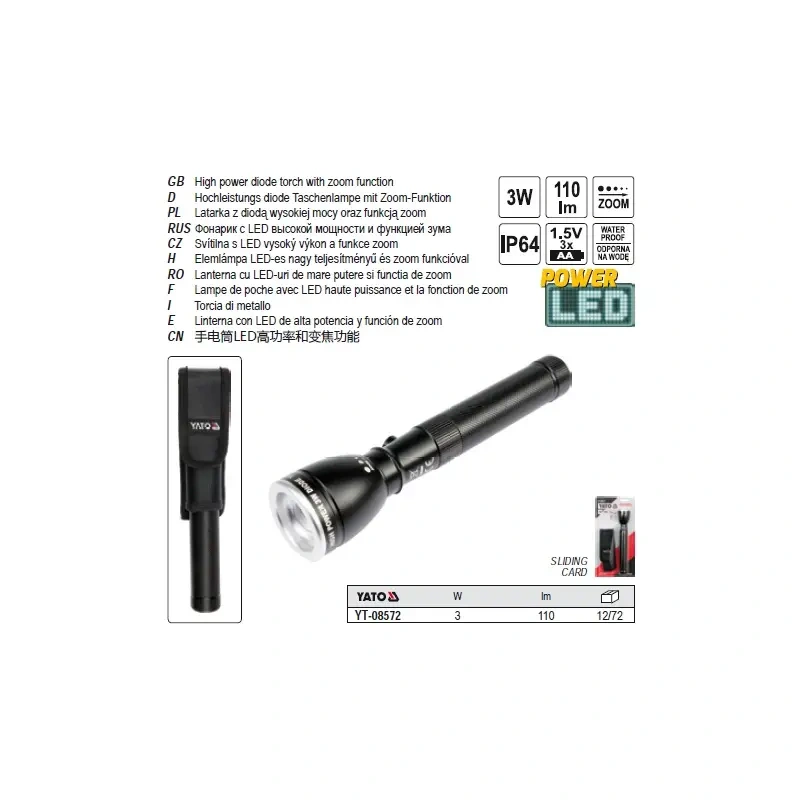 LED taskulamp 110lm 3W Zoom veekindel+kott AA 162x37mm YT-08572
