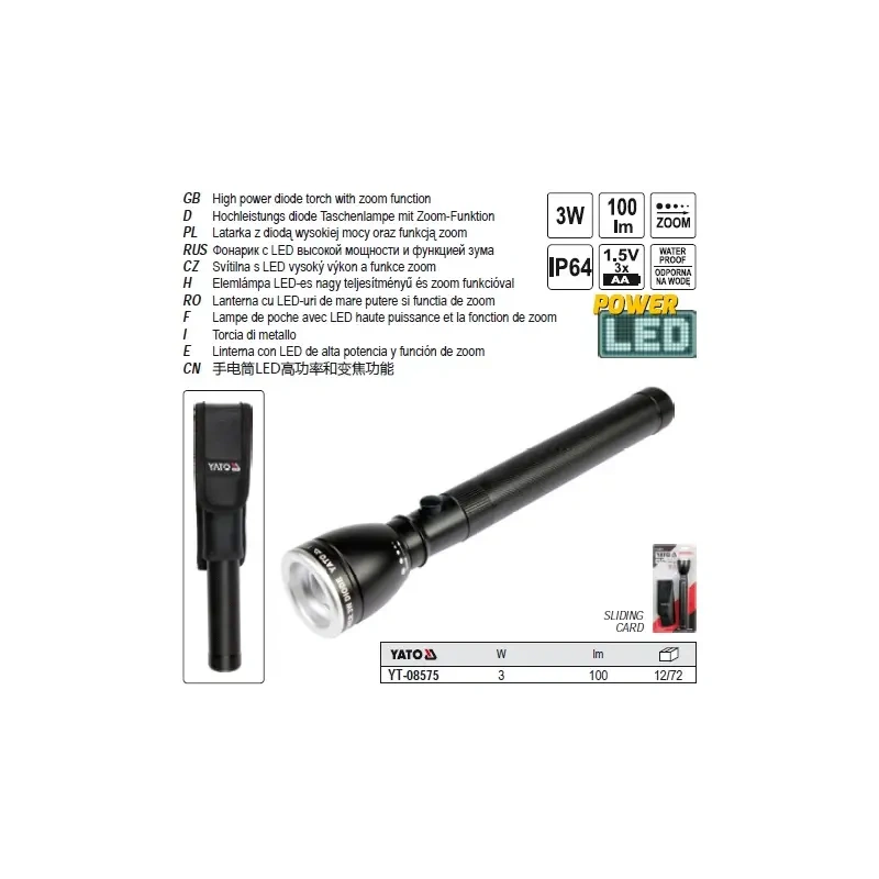 LED taskulamp 2xAA 110lm 3W Zoom veekind+kott 210x37mm YT-08575