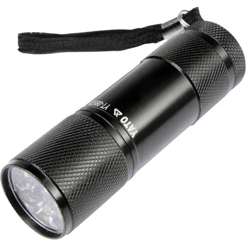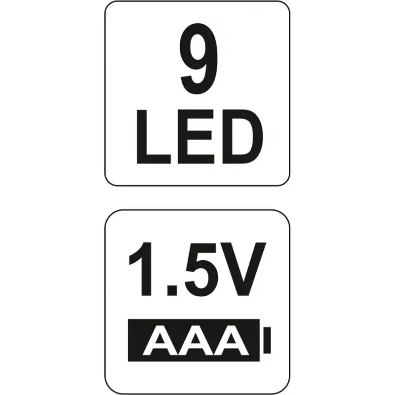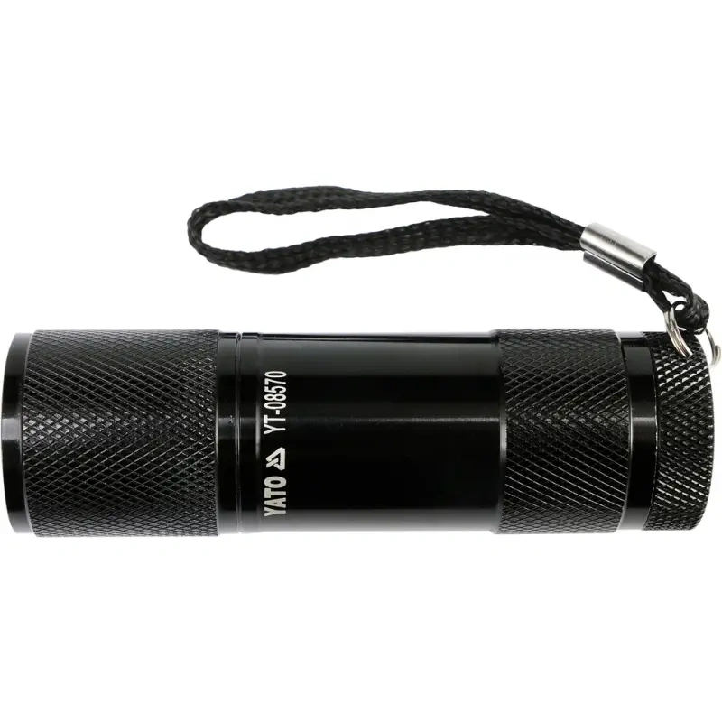 Käepärane alumiiniumist taskulamp, 9 LED, randmesilmus, kumminupp, patareidele 3xAAA (ei kuulu komplekti), suurus: 85x25mm