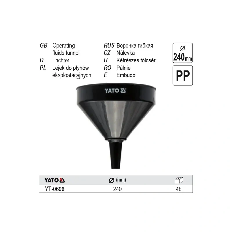 Töötlusvedelike valamise kanal. Valmistatud polüpropüleenist, täite läbimõõt 240 mm.
