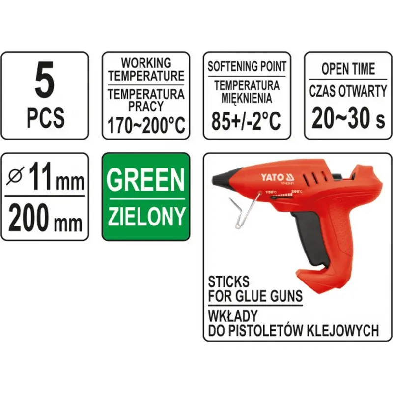 Liimipulk rohelise värvusega läbimõõduga 11mm ja pikkusega 200mm.