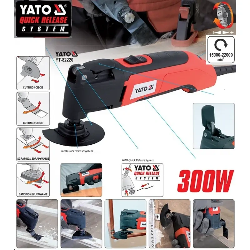 Yato Quick Release Systemi mitmefunktsioonilised võnkesuunalised tööriistad ja lisatarvikud võimaldavad kiiret tööriista vaba lisaseadmete vahetamist, mis lihtsustab ja kiirendab tööd.