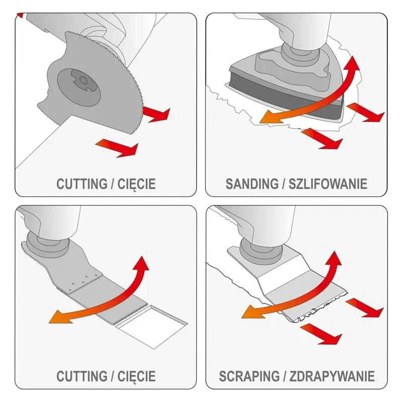 Mugav ja mitmekülgne mitmeotstarbeline tööriist lihvimis- ja lõikamisseadmetega.