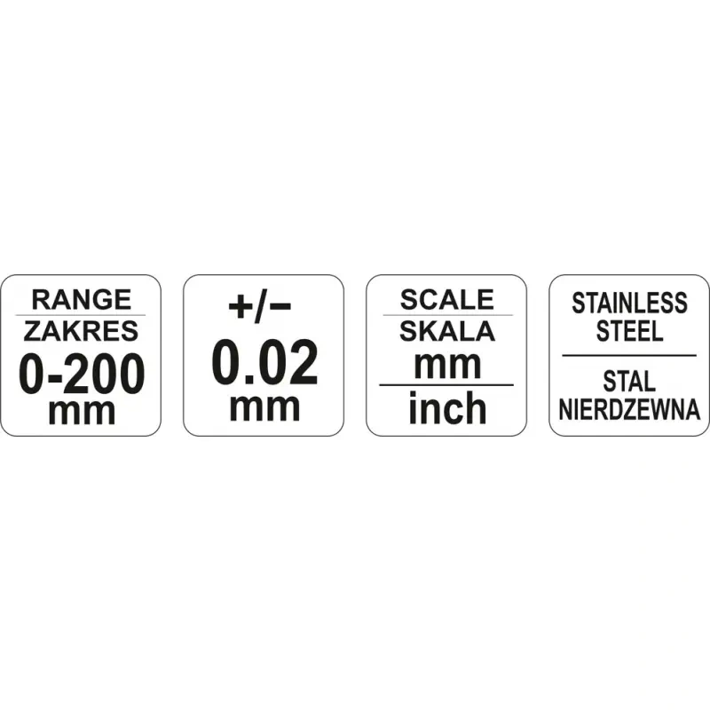 Klassikaline kaldepump on valmistatud roostevabast terasest ja võimaldab teha mõõtmeid vahemikus 0-200 mm. täpsusega 0,02 mm. Kogu on paigutatud vastupidavasse ja mugavasse pakendisse. Võimaldab väliseid, sisemisi mõõtmisi, kõrgus ja sügavusemõõtmisi.