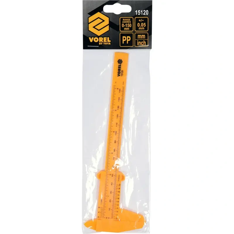 150 mm nihik polüpropüleenist. Kavandatud välise, sisemise, kõrguse ja sügavuse mõõtmiseks.