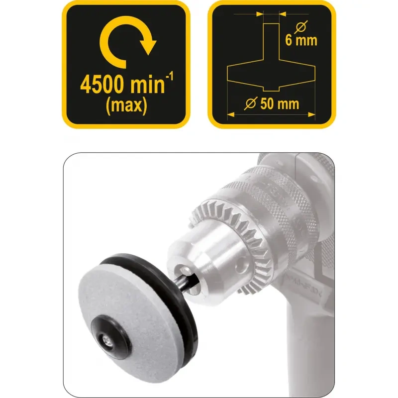 Kroomkorundist valmistatud profileeritud abrasiivketas on püsivalt kinnitatud 6 mm paksusele terasvõllile. Teritaja disain võimaldab teritada niitmisnugasid ilma vaeva nõudva lahtivõtmiseta. Maksimaalsed pöörded umbes 4500 / min