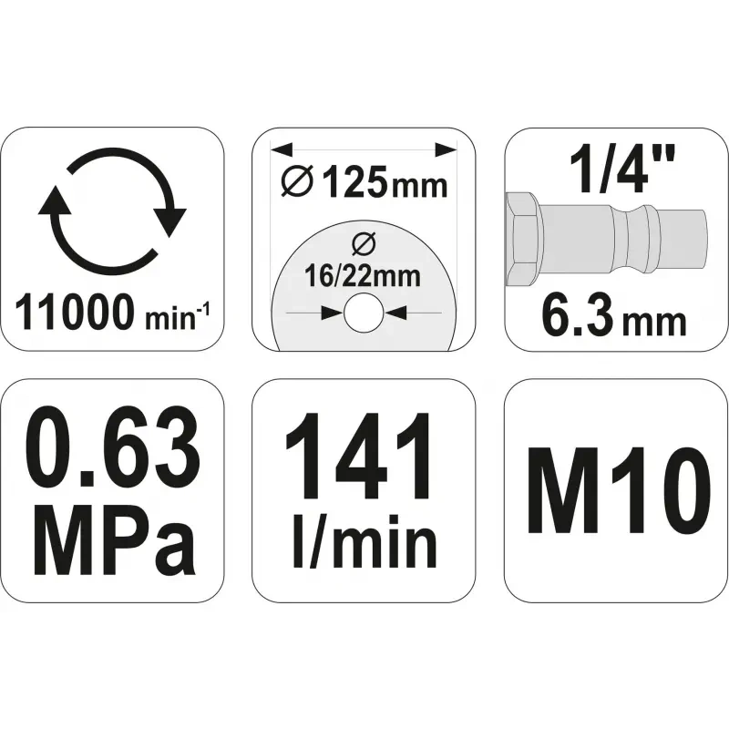 Nurklihvija lõikur õhuga 125mm d16/22mm 141l/min 11000/min YT-09675