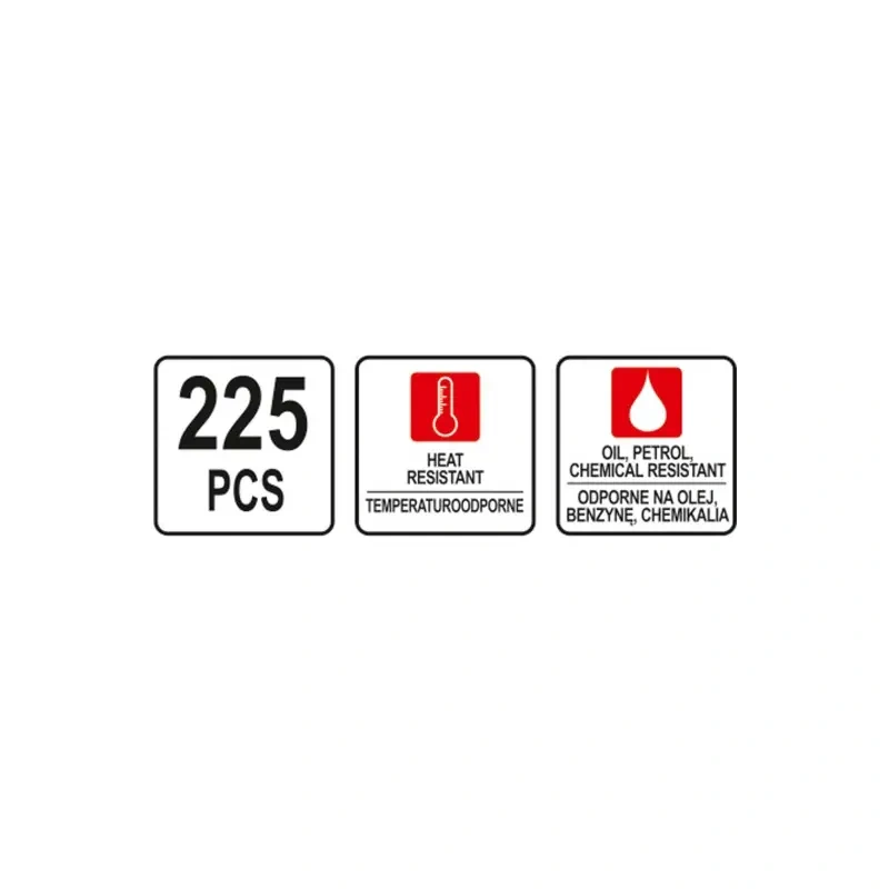 O-rõngaste komplekt õli-ja temp.kindlad 225tk 3-22mm YT-06877