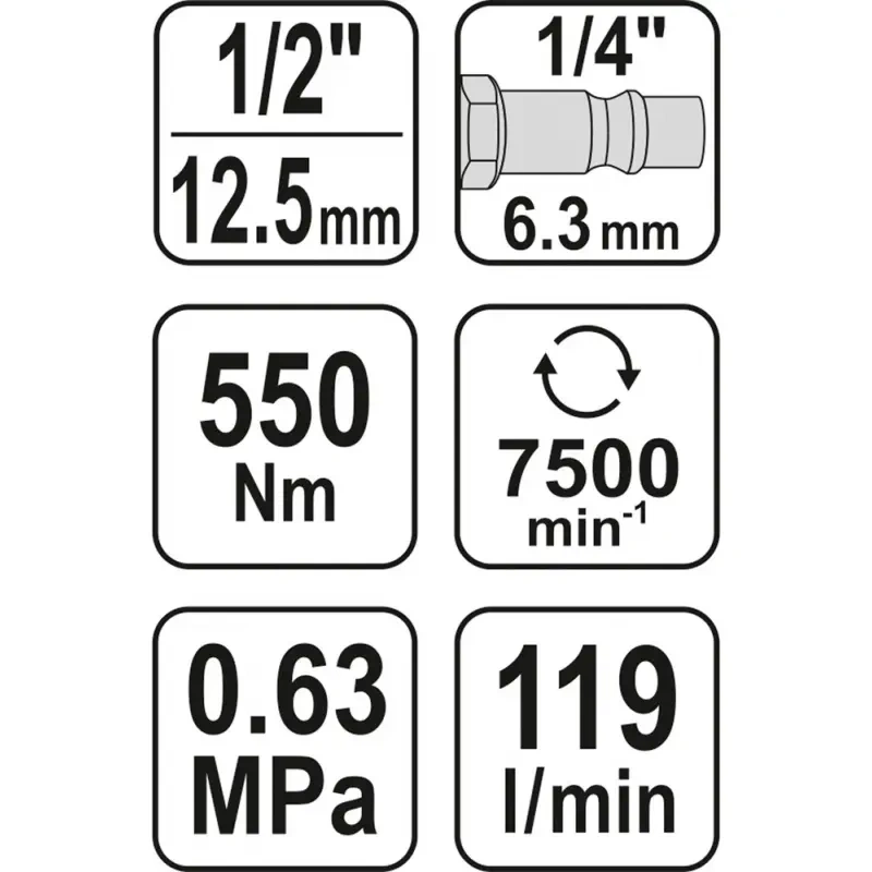 Õhumutrikeeraja 1/2" 550Nm 119l/min 2haamer 7500/min YT-09511