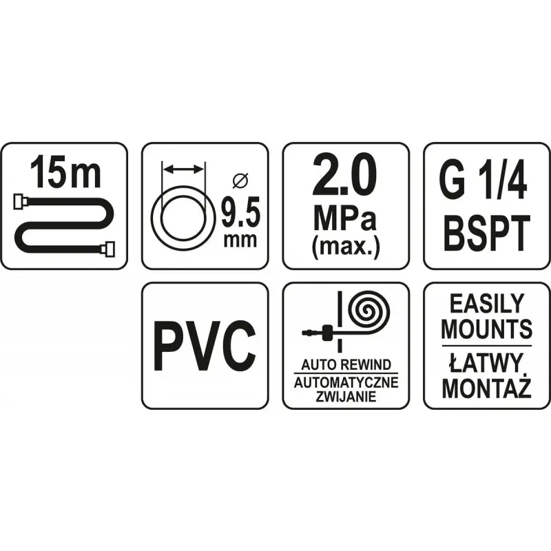 Õhuvoolik 9,5mm poolil 15m automaatne tagasikerimine YT-24250