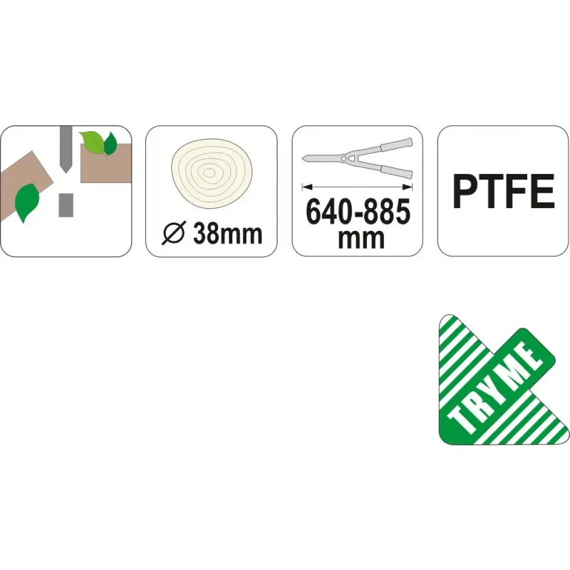 YATO poolt toodetud teleskoopsed metsajuurijad. Valmistatud kvaliteetsest süsinikterasest CS1050, mis tagab parema tera kõvaduse ja võimaldab täpset ja lihtsat lõikamist. Poleeritud tefloniga kaetud tera. Teleskoopmehhanism 640-885 mm. Plastist käepide, millel on libisemiskindel materjal. Maksimaalne läbimõõt on 38mm