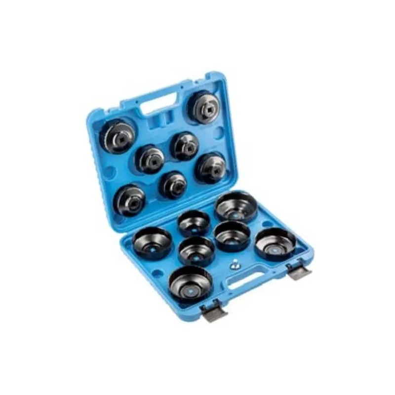 14 õlifiltri korgivõtme komplekt professionaalseks kasutamiseks töökodades ja autoteenindustes. Need on vajalikud sõiduautode ja kaubikute filtrite tõhusaks lahtikeeramiseks ja pingutamiseks.