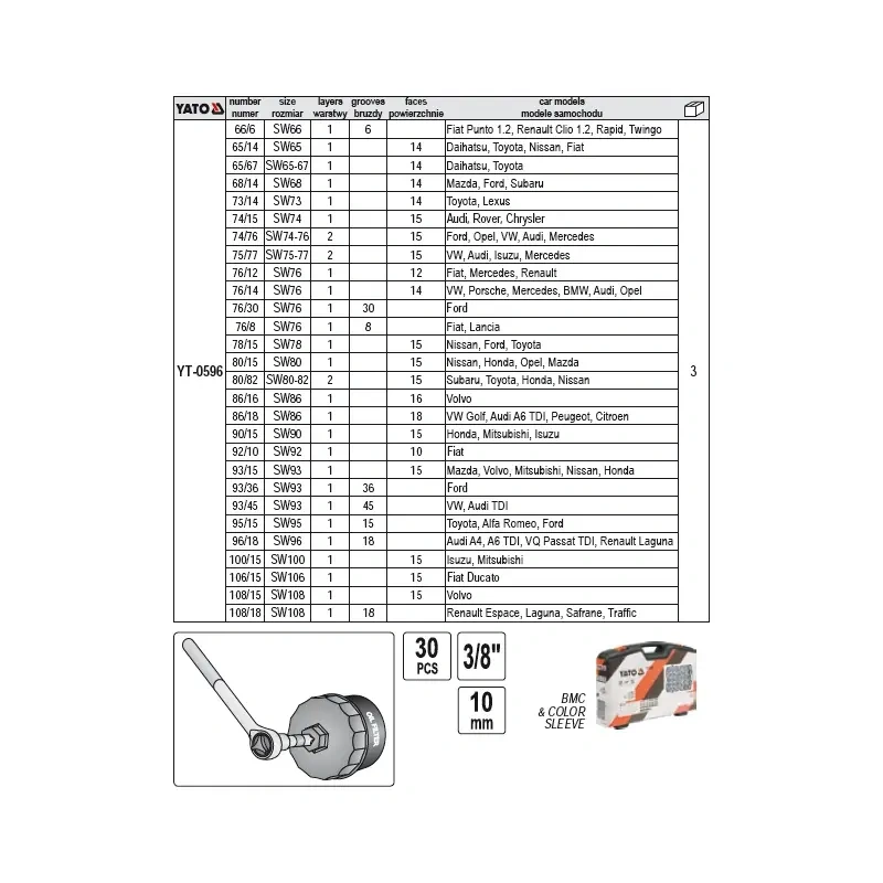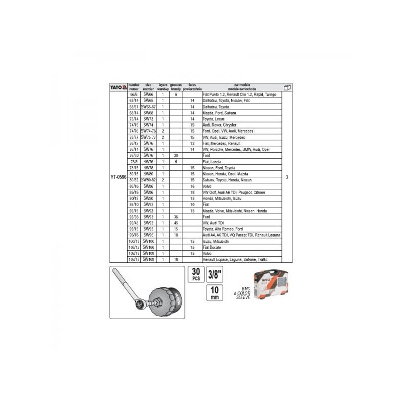 Õlifiltrivõti komplekt "kauss" 30osa YT-0596