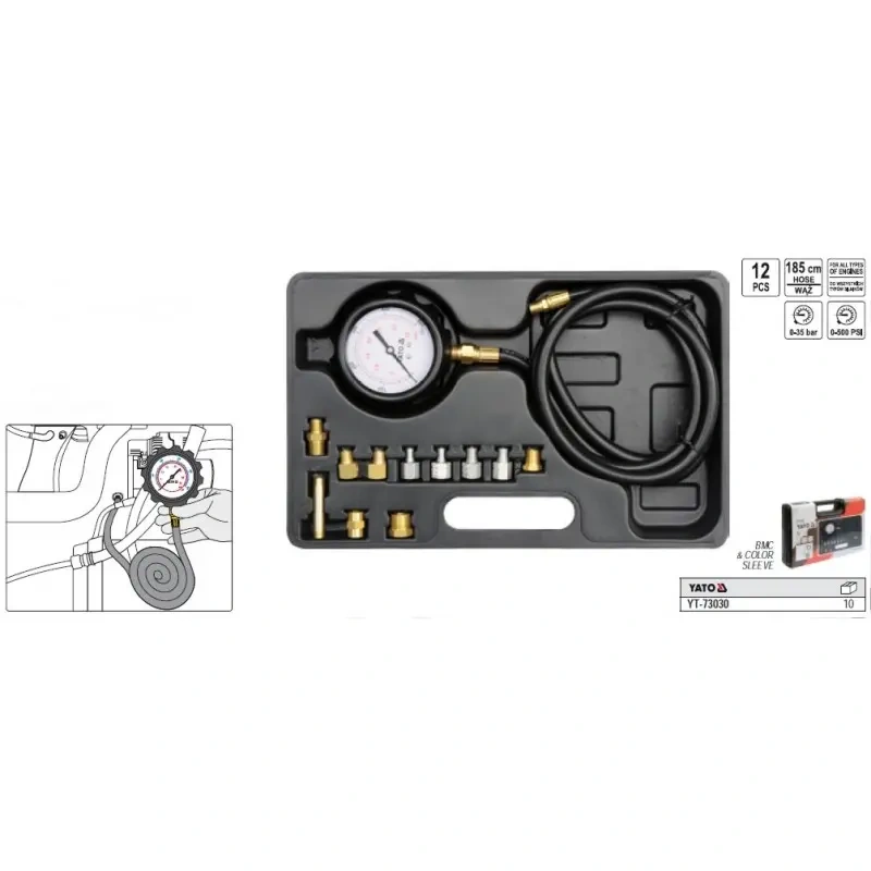 Õlirõhu mõõtja + otsad 12tk YT-73030