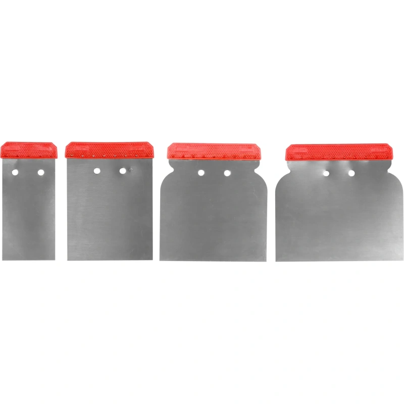 Neli ristkülikukujulist spaatlit flops. Roostevaba elastne leht, mis on valmistatud plastist käepidemega. Komplekt sisaldab spaatleid järgmiste laiustega: 50, 80, 100 ja 120 mm.