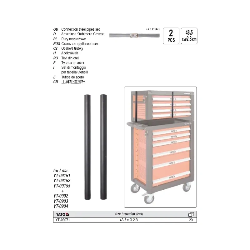 Paigaldus torud tööriista kapile 2tk komplektis 48,5x2,8 YT-09071