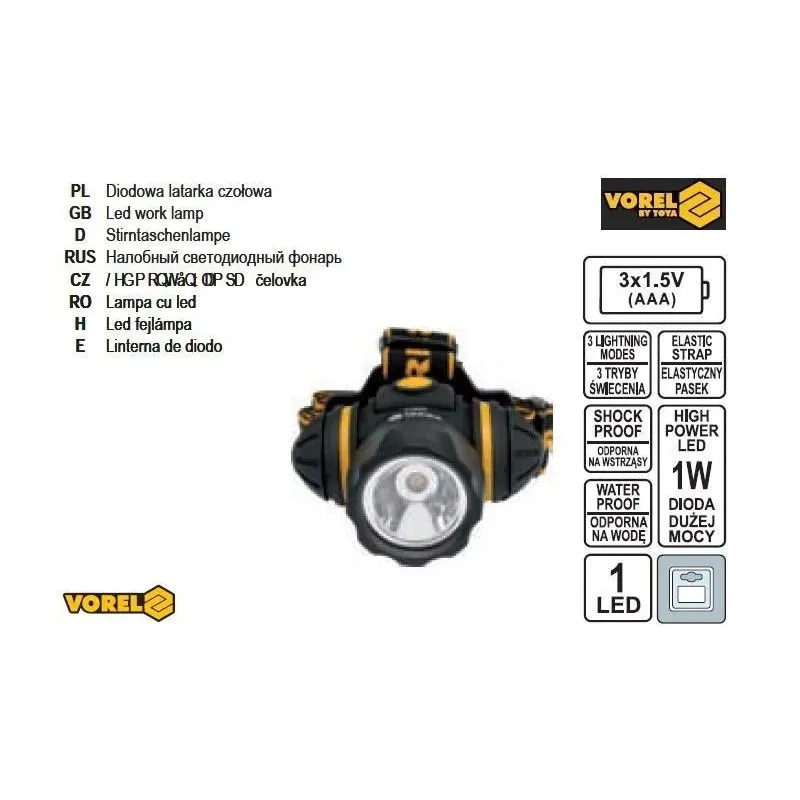 Pealamp 1LED 1w 3xAAA +elastne pael Vorel TR-88674