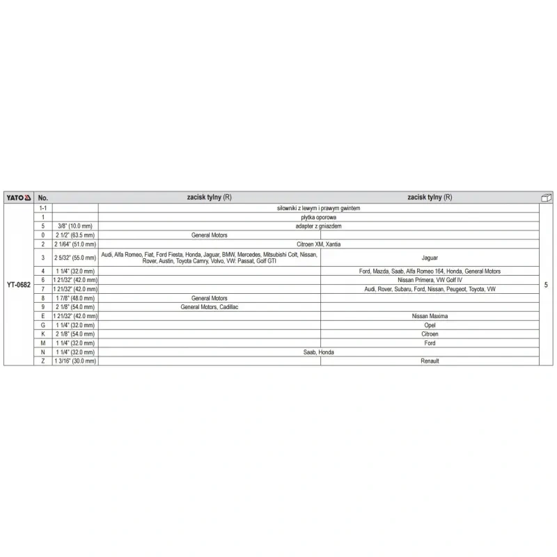 Autodele mõeldud: Citroen: Xm, Xantia; Alfa Romeo; Audi; Austin; BMW; Honda; Jaguar; MB; Mitsubishi; Nissan; Rover; Toyota; VW; Ford; Mazda; Subaru; Saab; Rover, GM, Peugeot, Renault, Mazda.