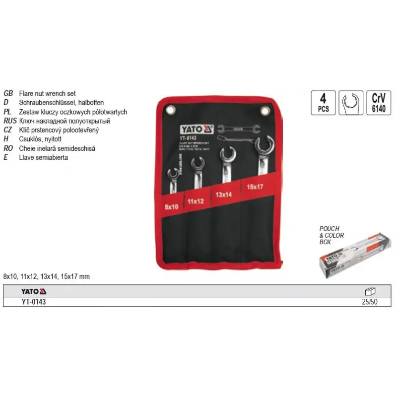 Piduritoru võtmete kompl. 4tk (8x10, 11x12, 13x14, 15x17) YT-0143