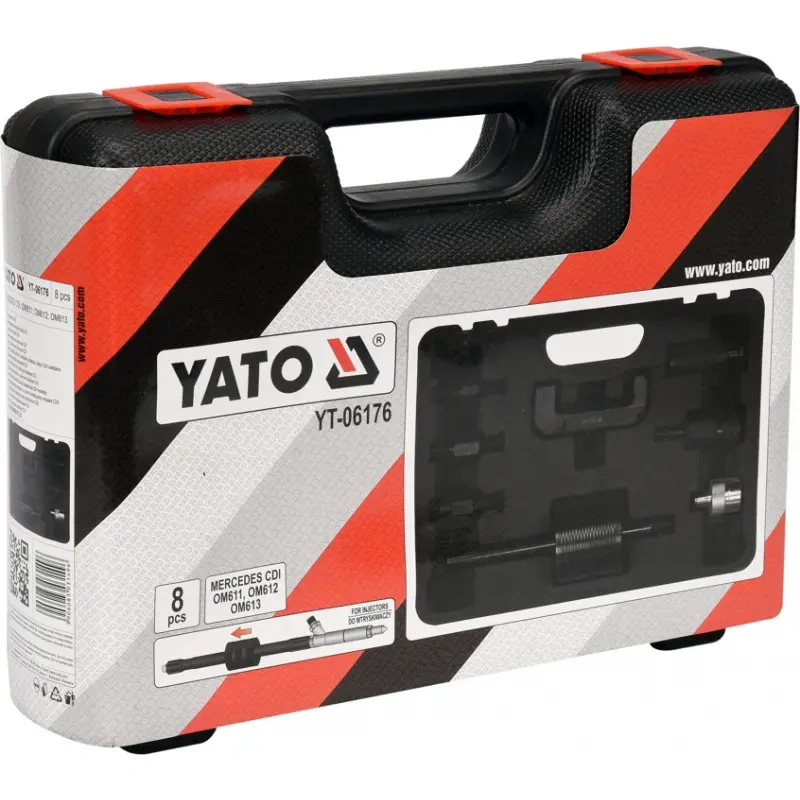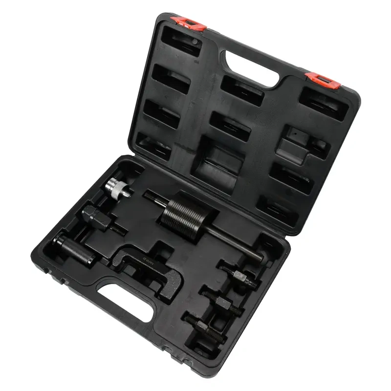 Professionaalne komplekt Mercedes CDI mootoripeast kinni püütud ühisrõhu kütusepihustite kiireks demonteerimiseks . Sobib sellistele tootjatele nagu Bosch, Denso, Delphi ja Siemens. Komplekt sisaldab 8 elementi: inertsiaalne haamer, liigendühendus tööks raskesti ligipääsetavates kohtades ja adapterid.