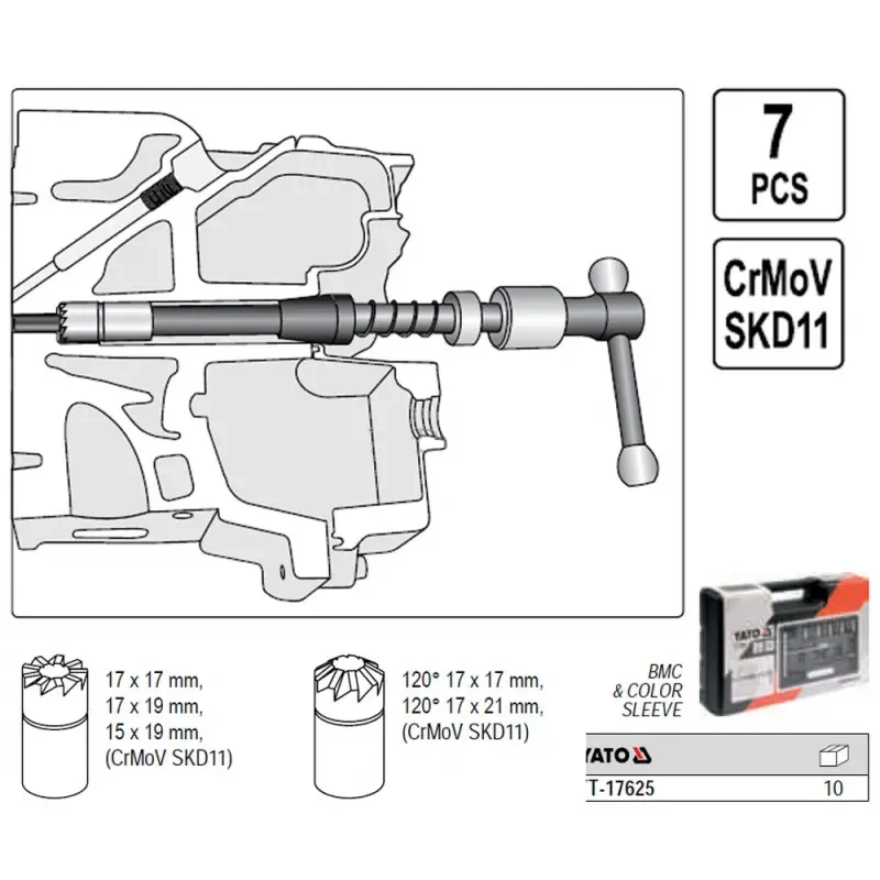 Pihustipõhja puhastamise komplekt (frees) 7osa kohvris YT-17625